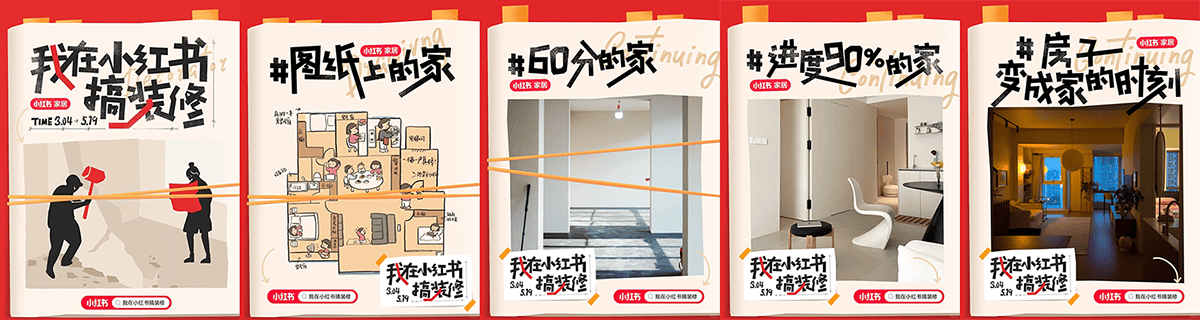 在#我在小红书搞装修 话题主阵地,由垂类官方账号@装修薯 领衔话题,邀请用户以时间为轴,共同记录家的每一步成长:从图纸上的家勾勒理想轮廓,到60分的家初具雏形,再到进度90%的家即将完工,最终定格在“房子变成家”的温暖时刻——在这里,每个阶段的装修里程碑都被看见,真实的家装体验与情感共鸣交织,共同编织出「家」从蓝图到现实的鲜活故事。