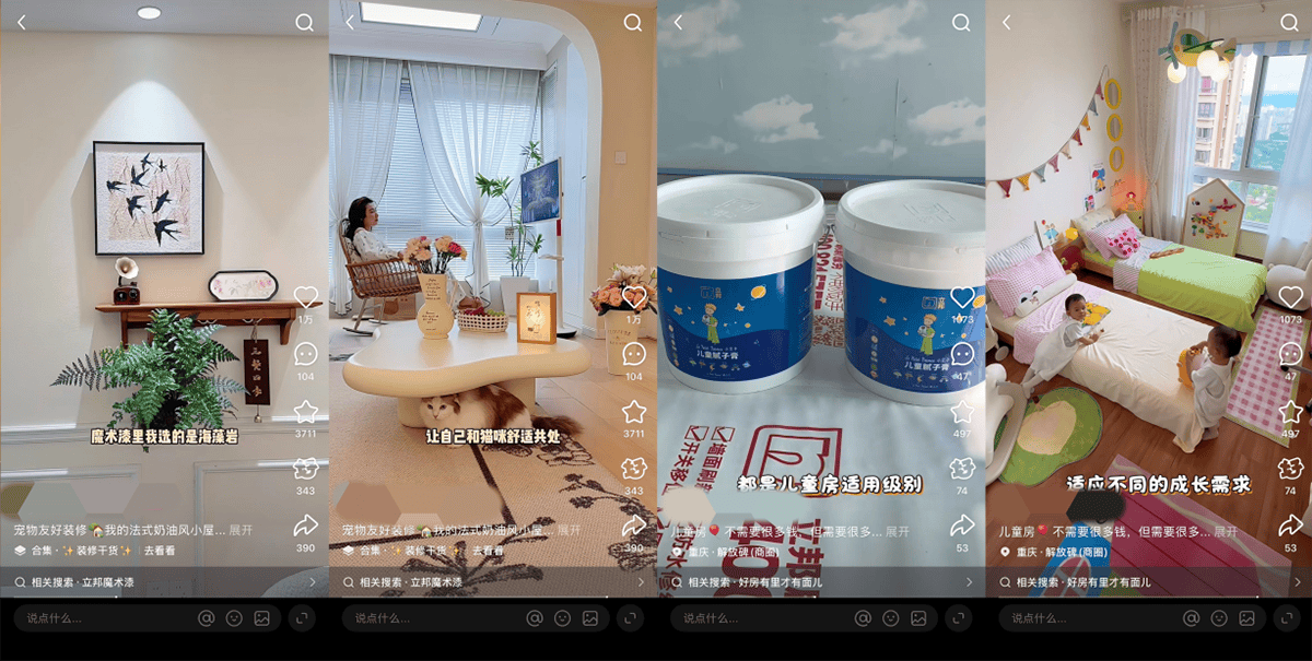 #好房有里才有面儿 话题下,汇聚了“自然主义、长期主义、旧房子新生活、人宠共享空间、自建房装修、守护成长的家”六大装修趋势的真实笔记。用户既能从中学习材料、工艺等硬核干货,将他人踩坑经验转化为自家装修的避坑指南,更能通过真实口碑感知「墙面健康需系统守护」的底层逻辑。以家居垂类博主为主的案例传播,不仅解决了不同家庭的个性化痛点,更以「问题-方案-验证」的内容链路,潜移默化夯实「选择立邦即是拥有一面有里及面健康墙面」的品牌心智。小红书以用户真实需求为锚点,用UGC内容搭建起内容共鸣营销场,既让装修人高效获取解决方案,也为品牌实现了从种草到转化的闭环。