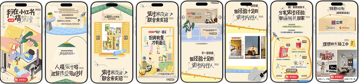 基于对用户装修需求的深度洞察,小红书家居垂类以2025年装修旺季节点为切口,精准锁定新装修、新改造需求人群,发起#我在小红书搞装修 长线IP。以用户装修时间线为核心脉络,拆解不同阶段的痛点需求与实用干货,通过内容、品牌与用户的深度联动,为当代装修人量身定制更全面、更落地的「装修实用指南」。