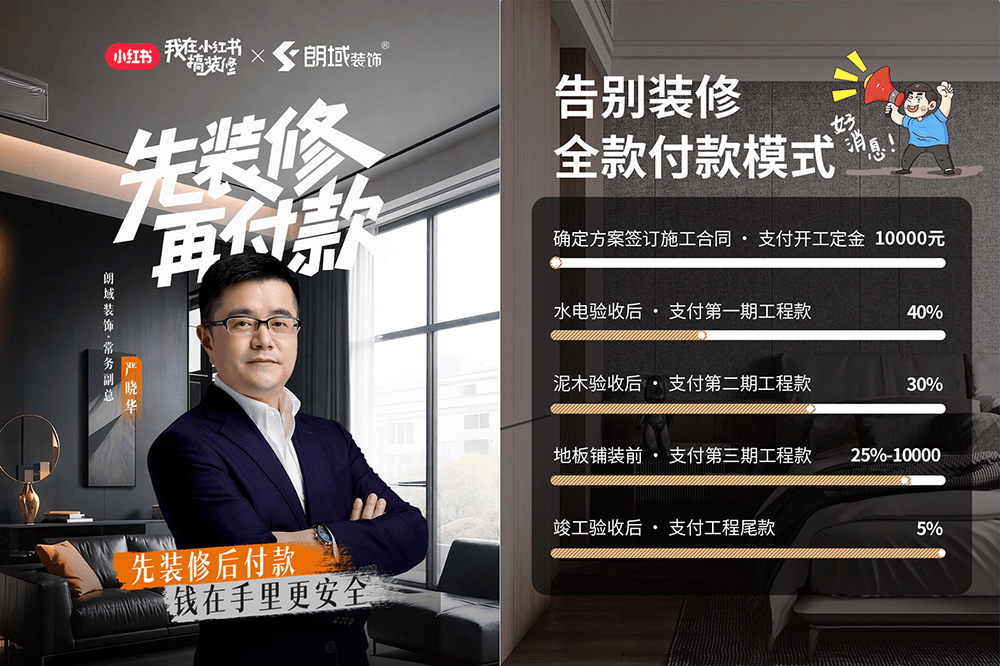 装修不止于施工,更关乎信任与温度。上海朗域装饰直击装修行业「增项乱象」、「分包失控」、「售后推诿」等痛点,率先推出「先装后付」模式,让#先装修后付款 从口号变为可落地的保障,更创新性开启「高管直面用户」的透明化沟通机制,让温度与诚意穿透行业信息差。